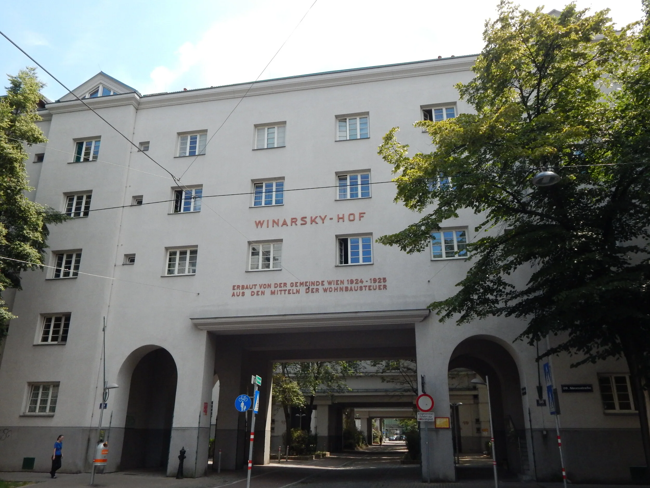 Dem ersten sozialdemokratischen Gemeinderat Brigittenaus gewidmet, ist der Winarsky-Hof unsere nächste konzertante Gaststätte. Abseits dem Namensgeber Leopold Winarsky, war dieser Gemeindebau bekannt für seine Lokale, Kindergarten, einer Bibliothek und sogar dem "Winarsky-Kino."
